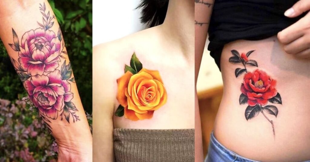 Color changes everything in tattoo art. A red flower feels bold. A black one feels deep. Pink feels soft and emotional.