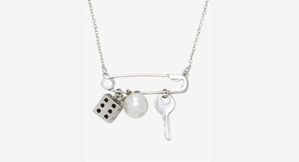 The safety pin necklace functions as a contrast piece. When paired with minimalist clothing, it draws attention through symbolism rather than excess. In layered or alternative styles, it reinforces themes of defiance and authenticity. Its effectiveness lies in restraint rather than exaggeration.