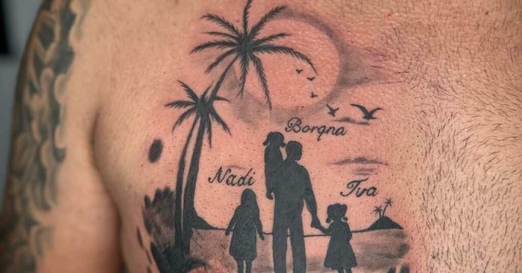 These are deeply connected to meaningful tattoos for men because they represent love and connection. Many people say family tattoos feel like “wearing memory on skin.”