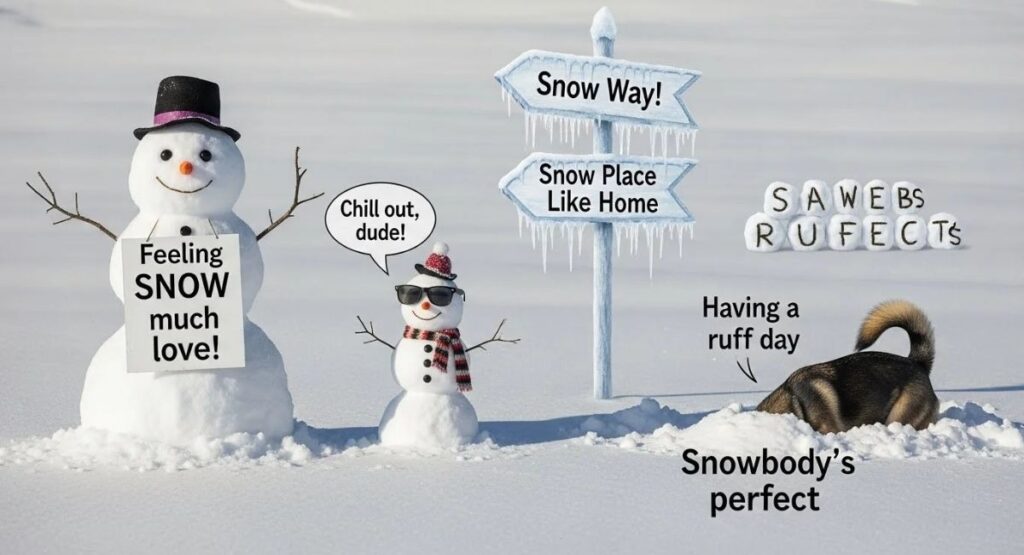 - Snow-based jokes fall softly but land perfectly ☃️😂